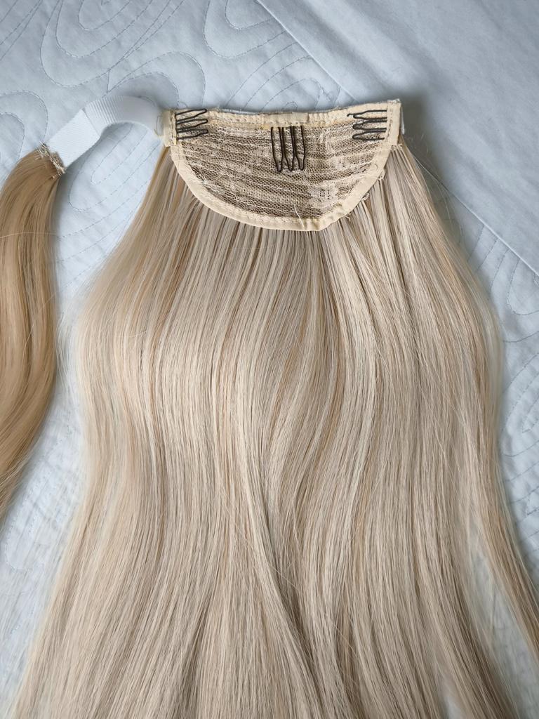 EASIHAIR Long Straight Wrap Around Clip In Ponytail Hair Extension Synthetic Pony Tail Fake Hair Brown Blonde False Afro Hairpieces Wig