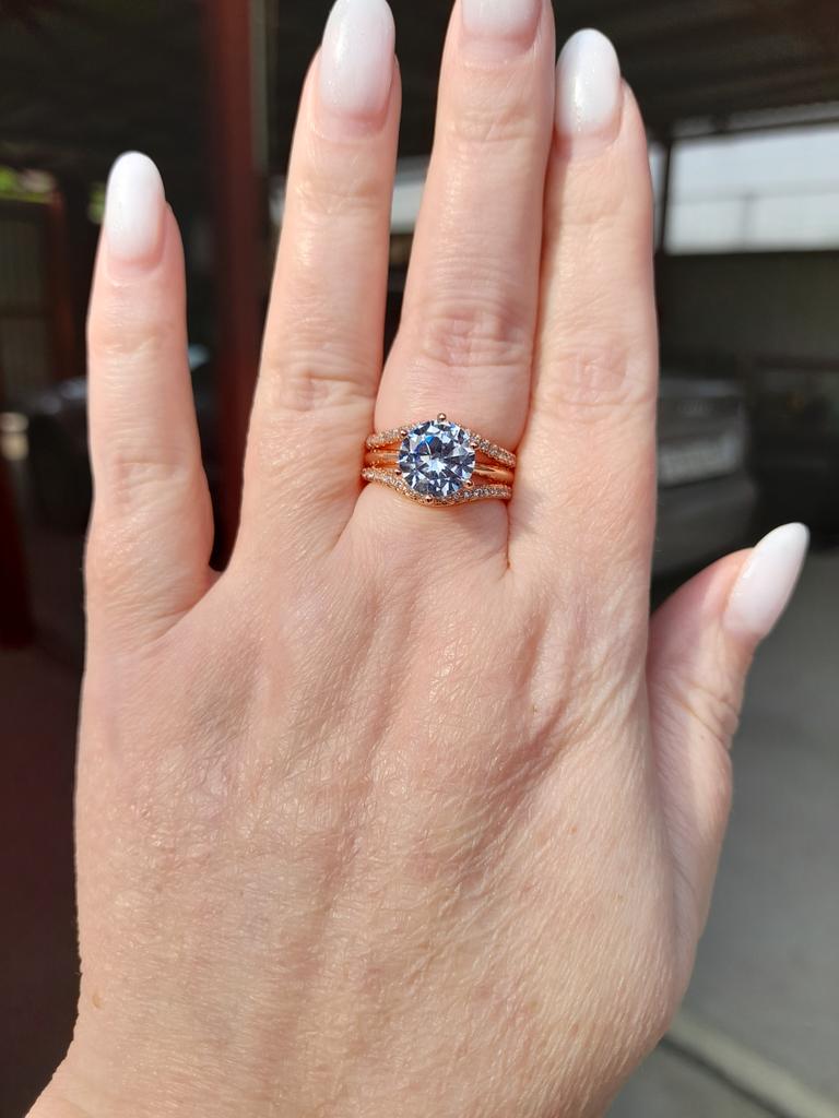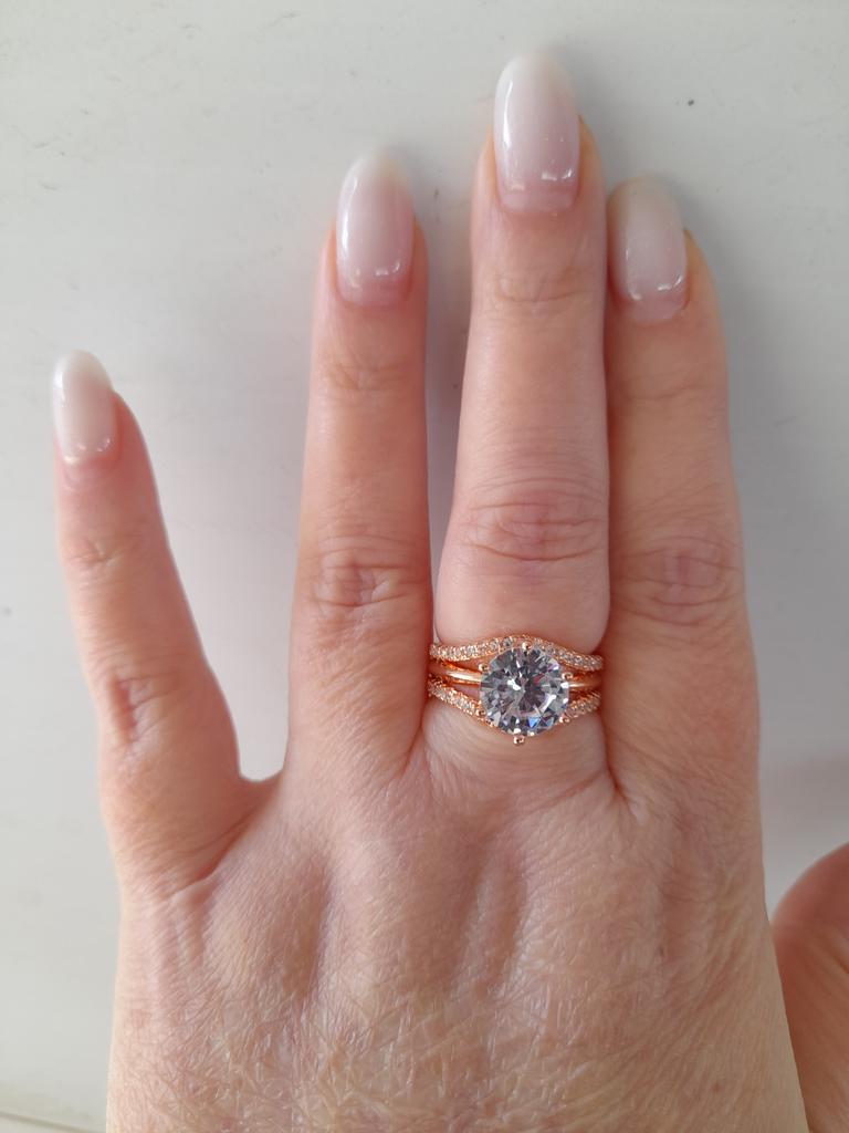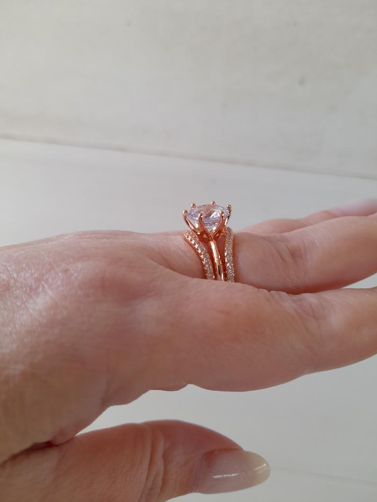 Rose Gold Plated Women Wedding Rings Luxury Cubic Zirconia Jewelry Size 6-10