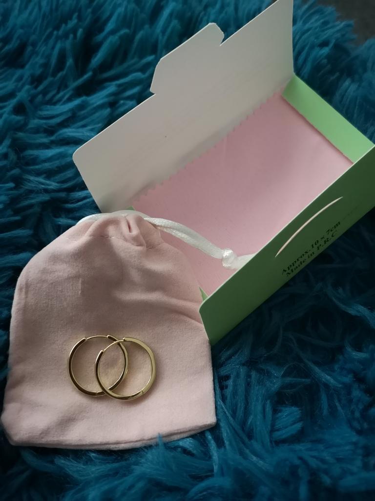 Very beautiful earrings 😍 The seller put a gift bag, in a small envelope there was a cloth for wiping. This is very good 😊 There is a sample on the earrings. Indistinguishable from gold
