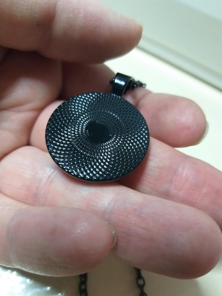 A beautiful pendant with a chain. The chain is painted black. Maybe it will peel off. I'll see how much is enough. Because I plan to wear the pendant for a long time - for a long time as a charm! Thanks Jum and the seller!