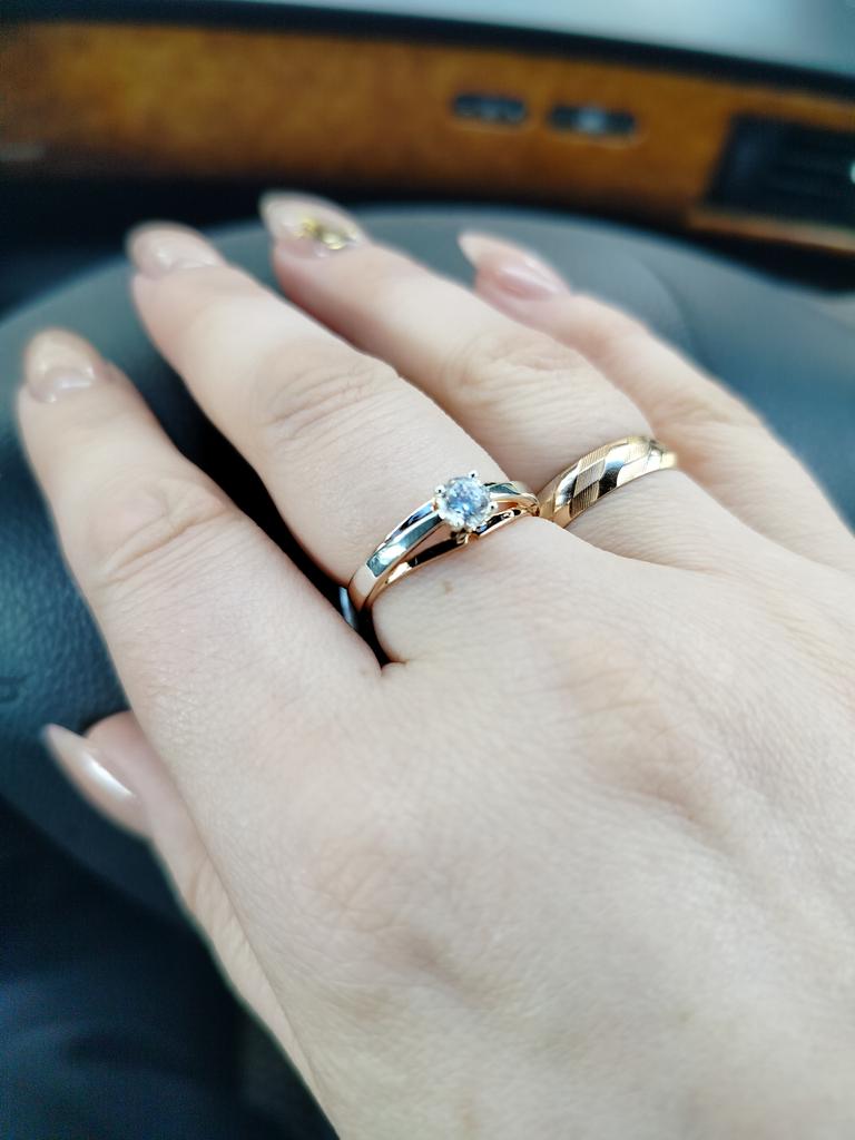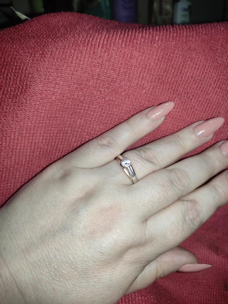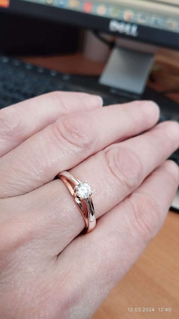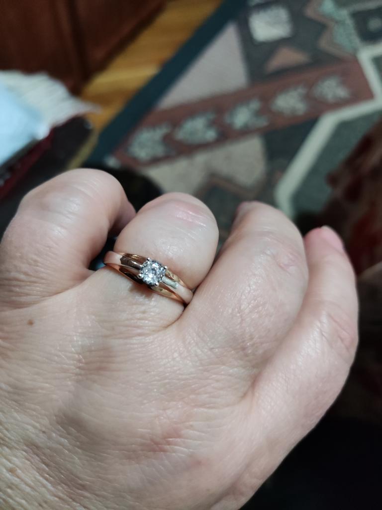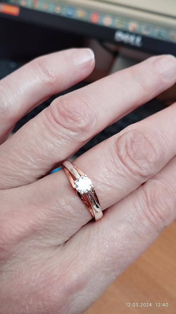 Wonderful ring! It feels like this is not jewelry, but real gold and silver or rose gold and white gold. A pebble shines no worse than a diamond. Very pleased!