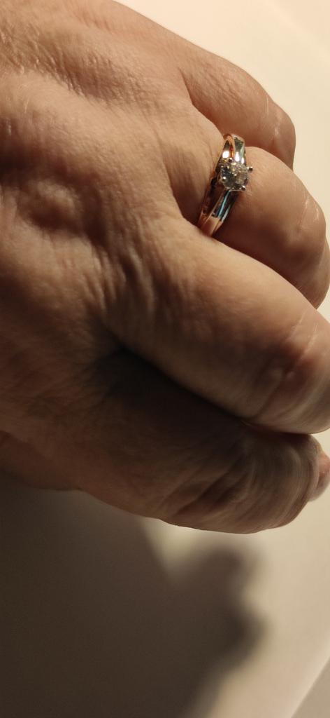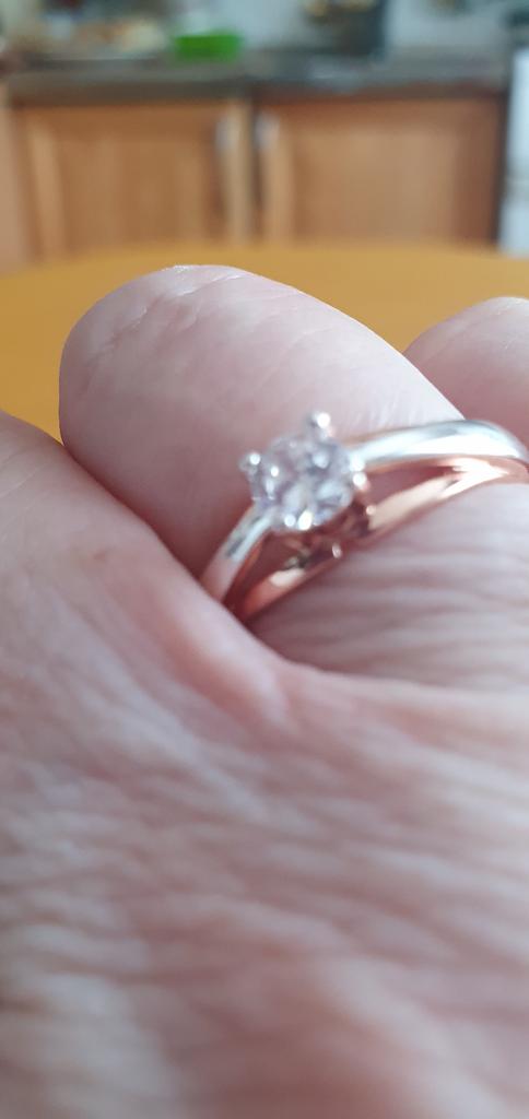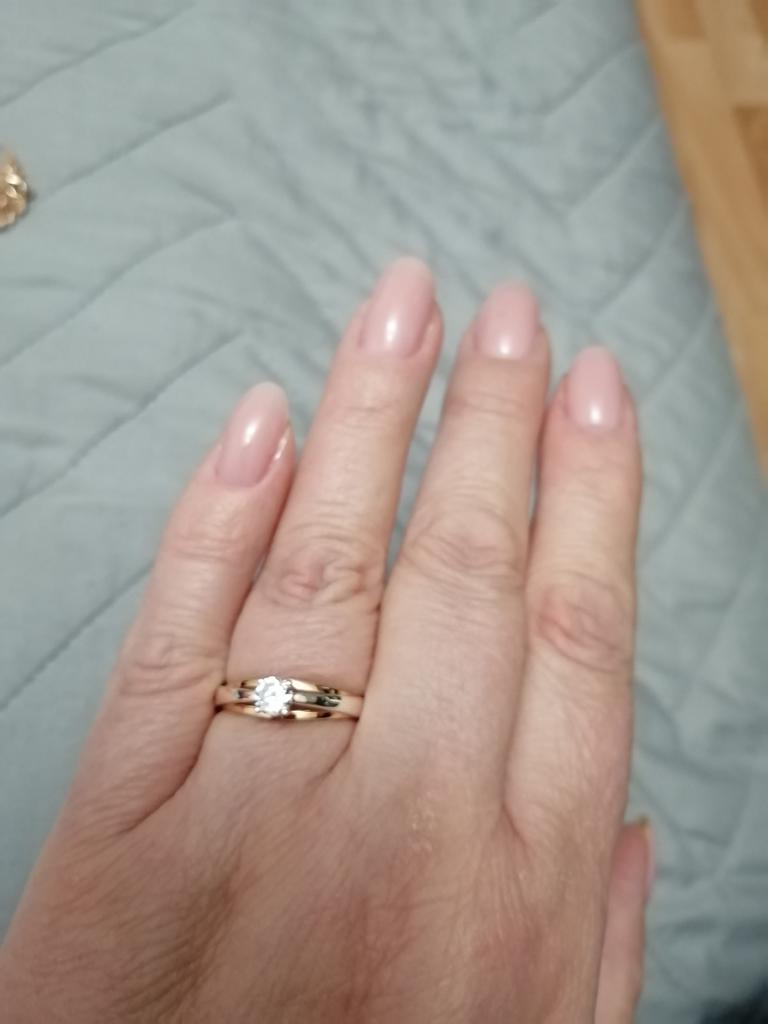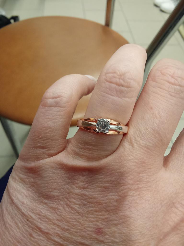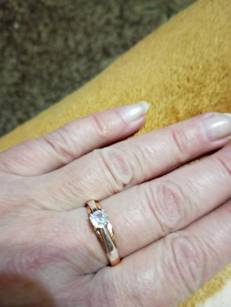 Wonderful ring! It feels like this is not jewelry, but real gold and silver or rose gold and white gold. A pebble shines no worse than a diamond. Very pleased!