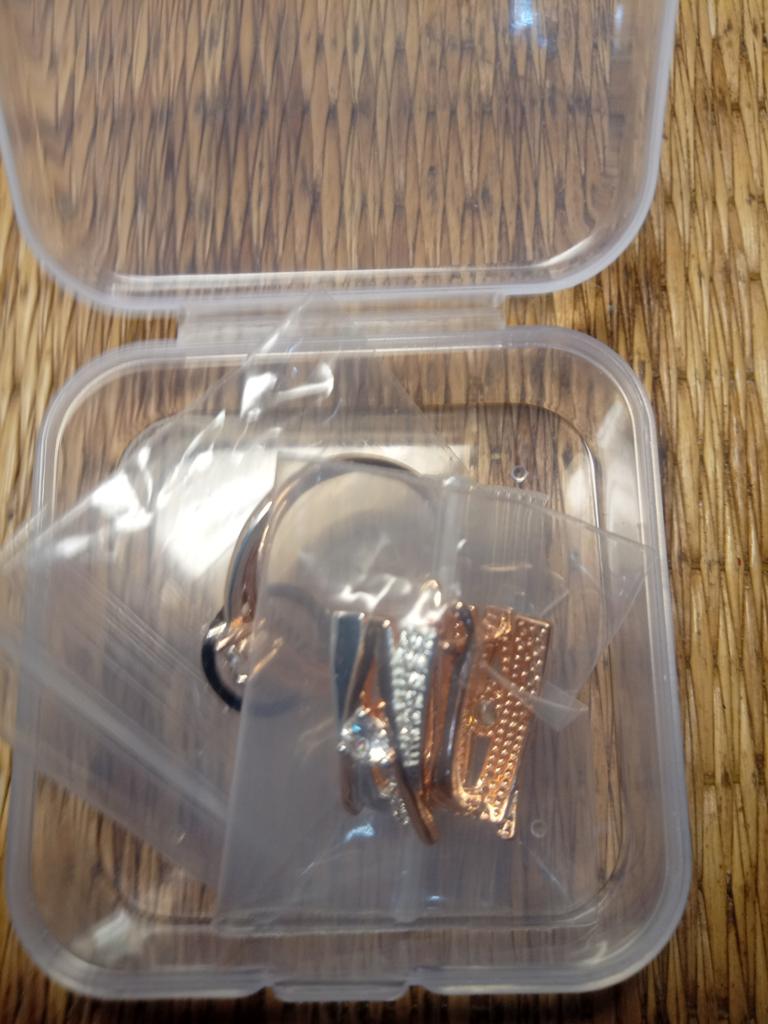 The order was delivered within 2 weeks. 4 items arrived in one package. Everything is well packaged, in excellent condition without defects. Thanks to the sellers and sorters. A very beautiful ring. Bicolor, looks elegant.
