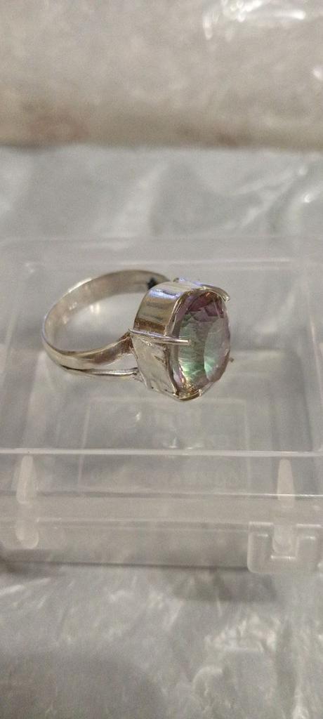 925 hallmarked silver ring...i think it's an imitation of the mystical topaz stone...the glass stone is big and beautiful π...thank you very much to the seller for the fast and well packaged shipment... I recommend... have a nice sunny day...