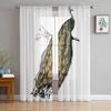 Peacock Feathers Green Curtain Window Tulle For Living Room Bedroom Kitchen Chiffon Sheer Window Treatment Decorations