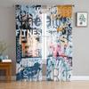 Vintage Old Newspaper Graffiti Tulle Curtains For Living Room Bedroom Decoration Chiffon Sheer Voile Kitchen Window Curtain