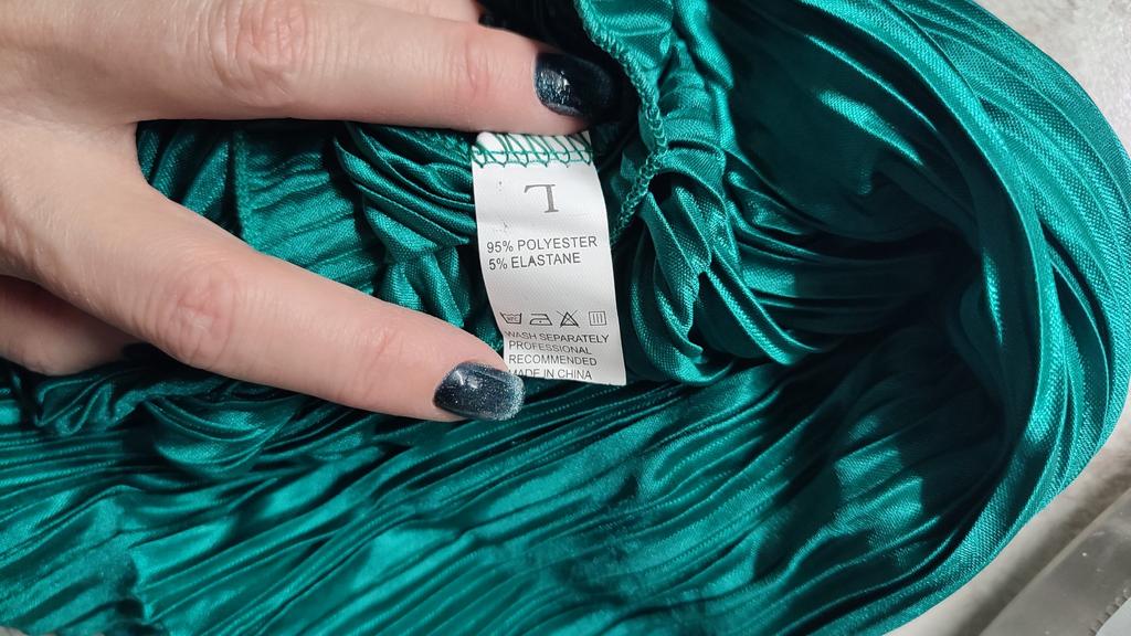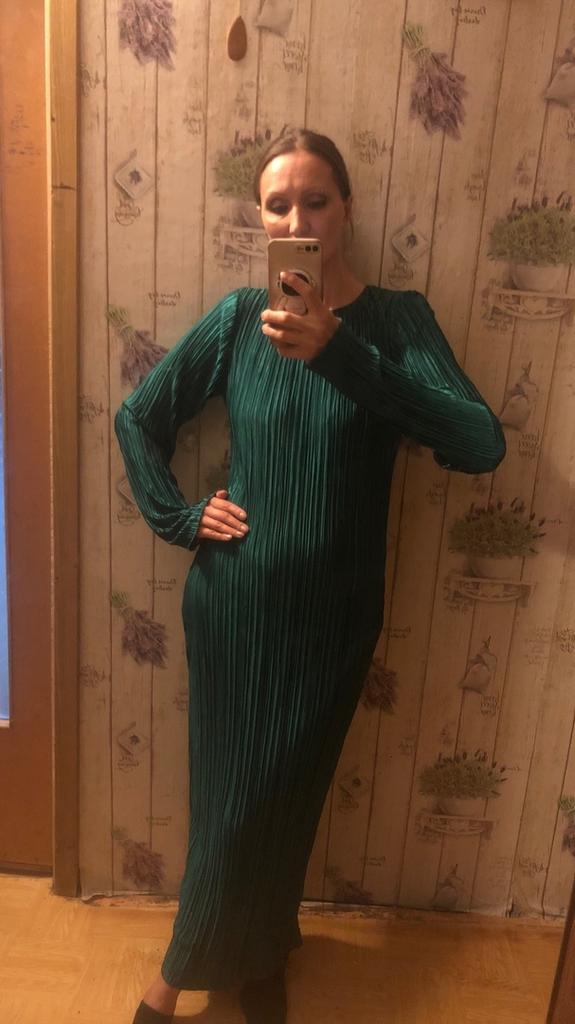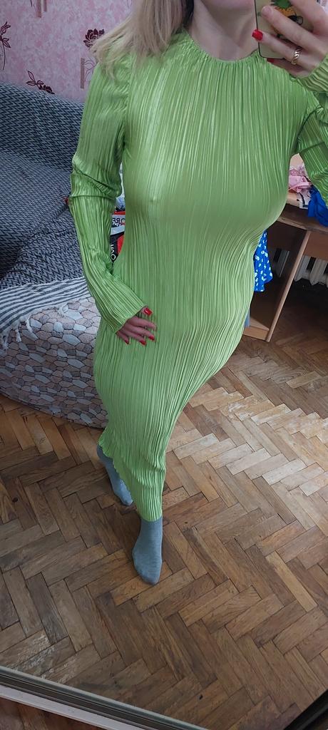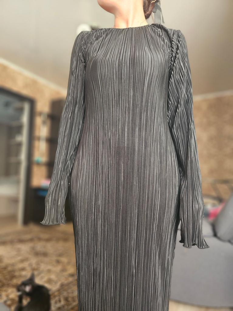 The dress is very beautiful, the size fits L. At my height of 1.66 the dress reaches the ankles. The material is fine.