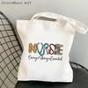 Women Shopper Bag Nurse Cat Lover Printed Kawaii Bag Harajuku Shopping Canvas Shopper Bag Girl Handbag Tote Shoulder Lady Bag