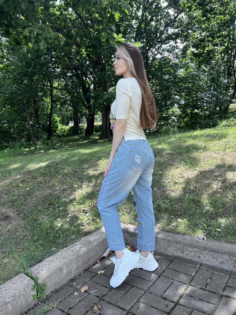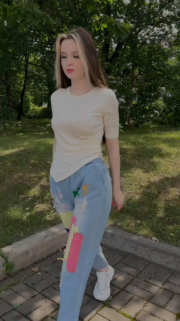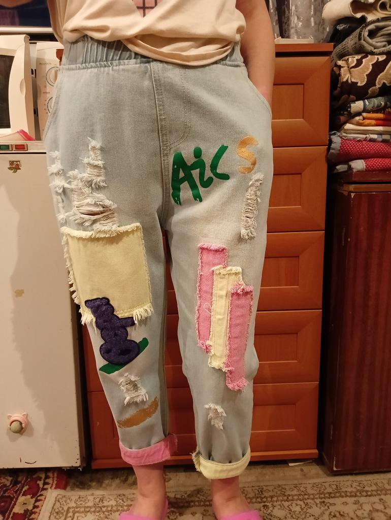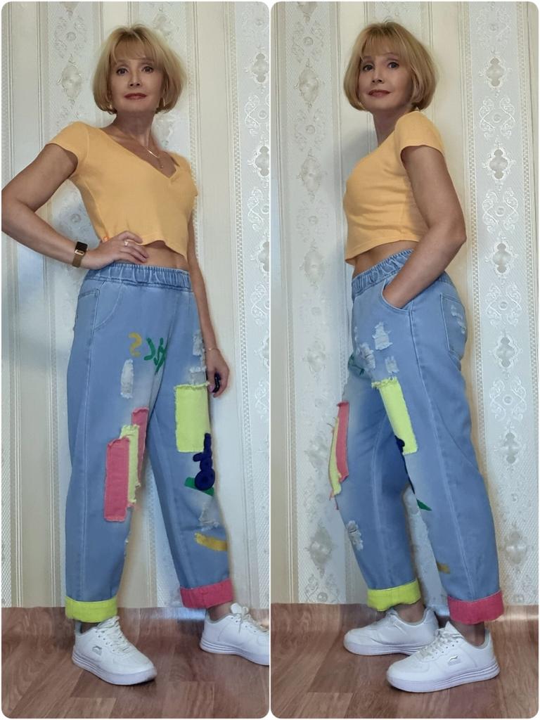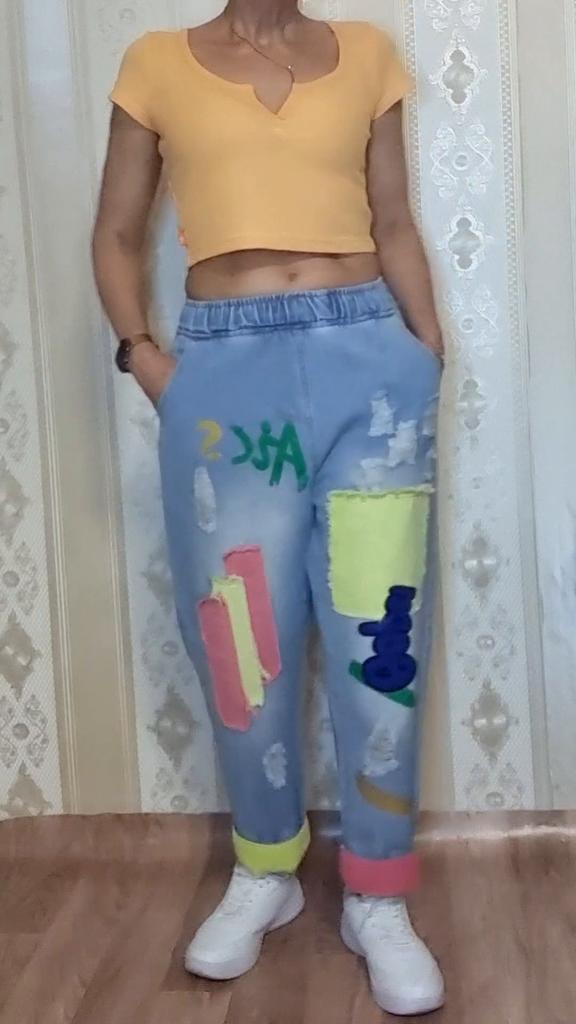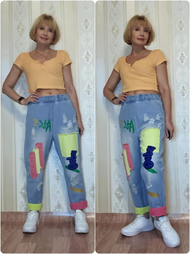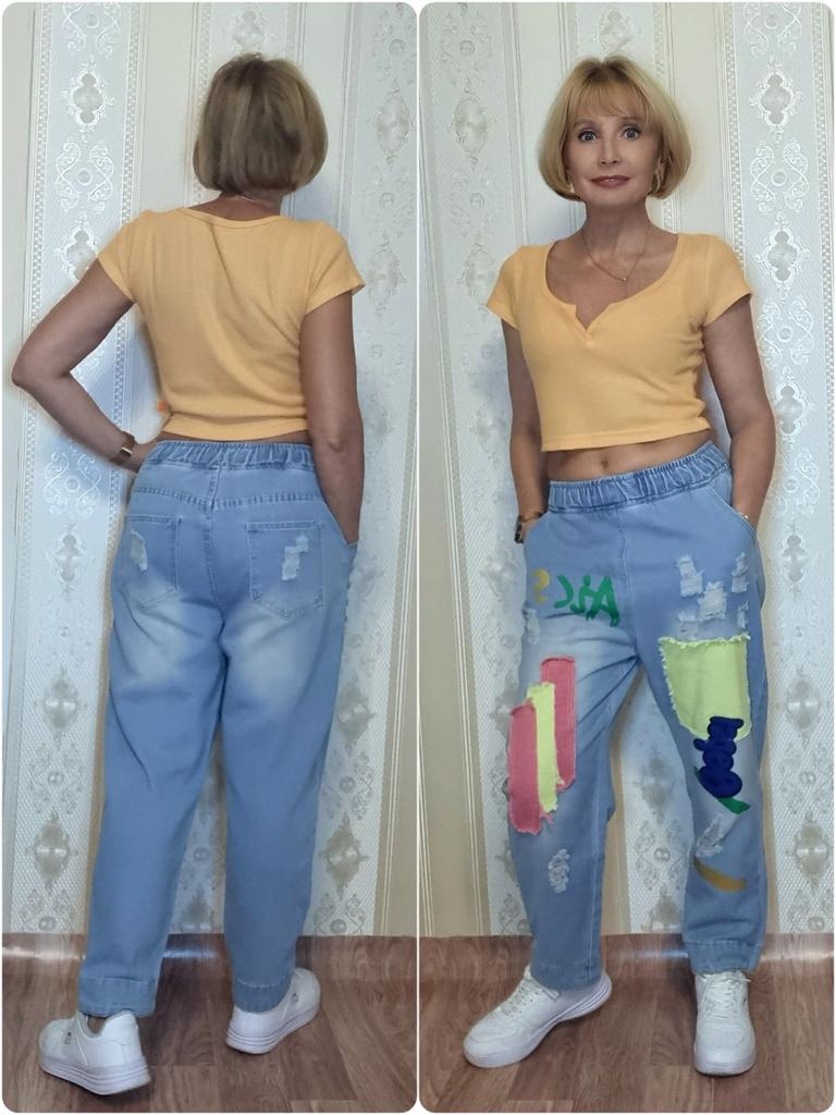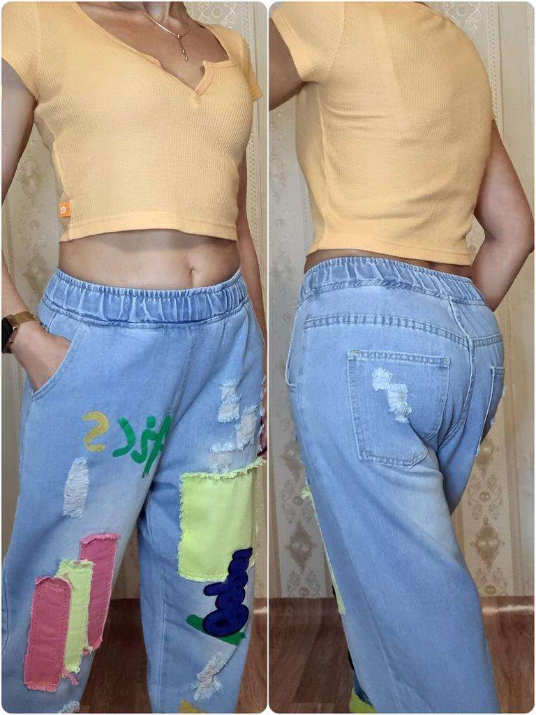 The colors are not as bright as in the photo, the model is of an unclear cut, in the front and back they do not just hang, but bubble... The quality of the fabric is excellent, but I do not know how to wear these wonderful jeans. I will add - over time I got used to and fell in love with these jeans, I recommend!!!