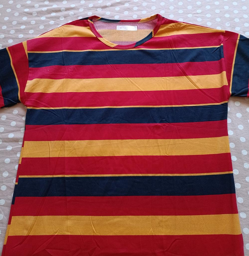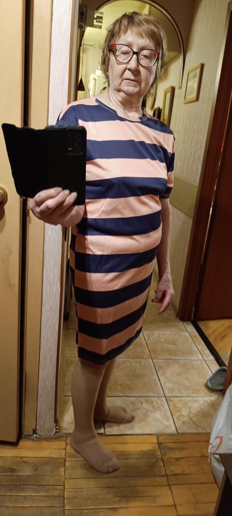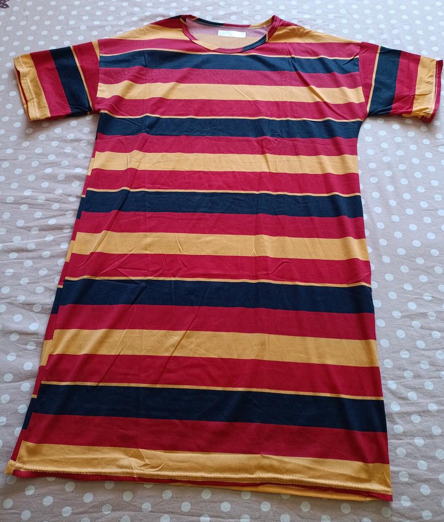 As a nightgown it's good, but the stripes are sewn crookedly, and what spoils everything is that the neckline is finished with the same striped fabric, and it's very noticeable