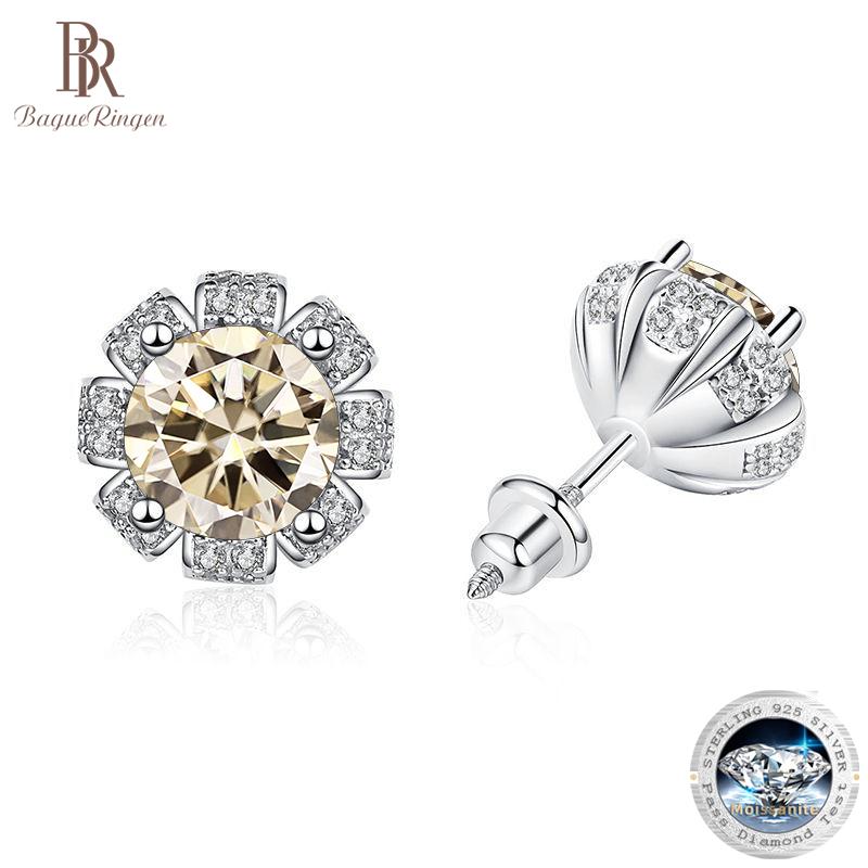 Bague Ringen 1carat D Color Round Moissanite Earrings For Women Wedding Sterling Silver 925 Jewelry Flower Shaped Female Ear Studs