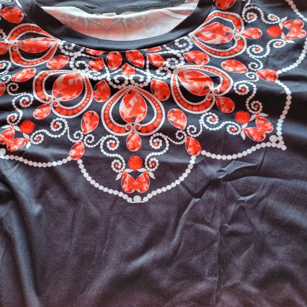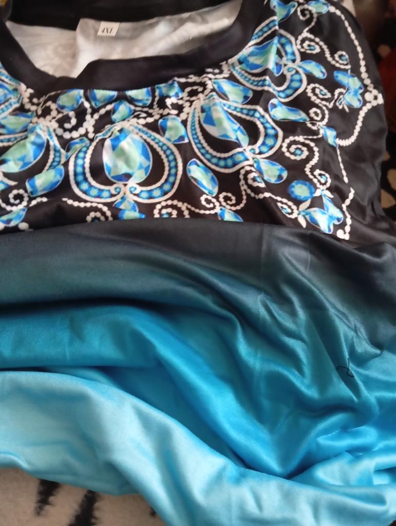 The fabric is soft, pleasant, but it has a TROUBLE pattern. The pattern at the top is blurry, it’s impossible to wear it when going out, only at home.