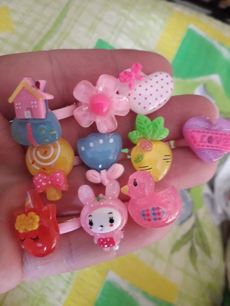 10pcs/lot Children's Cartoon Rings Candy Flower Animal Bow Shape Ring Set Mix Finger Jewellery Rings Kid Girls Toys Anillo