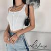 2023 New Women's Open Umbilical Tank Top Sleeveless Square Neck Irregular Single Breasted Tank Top