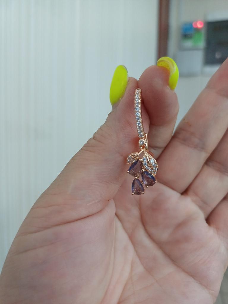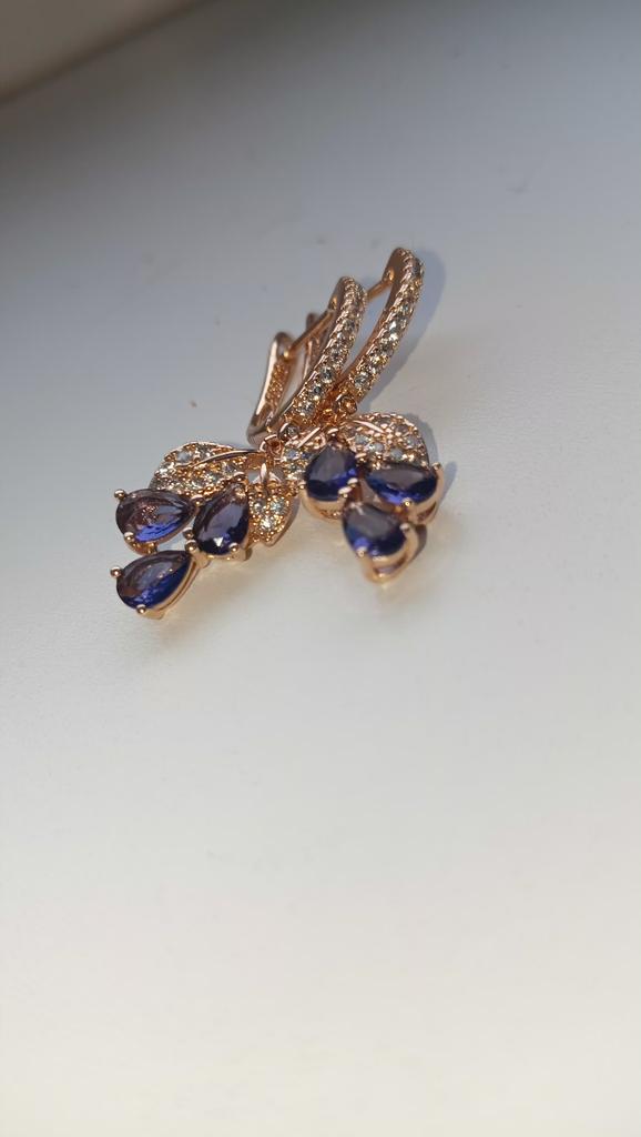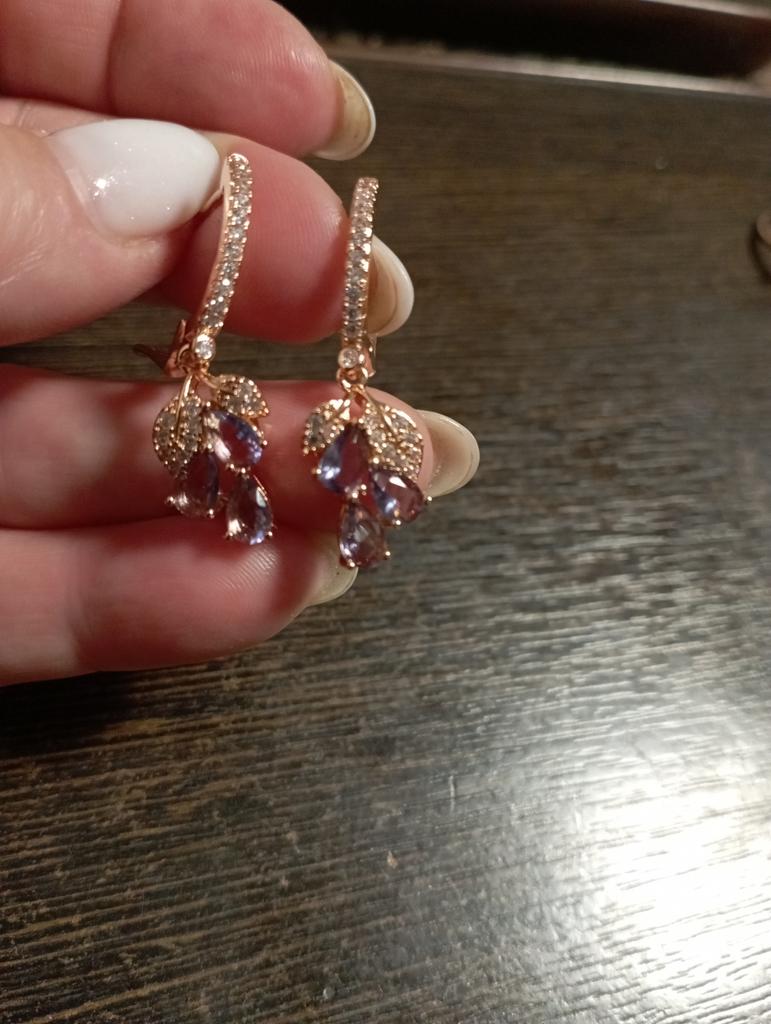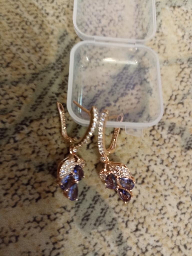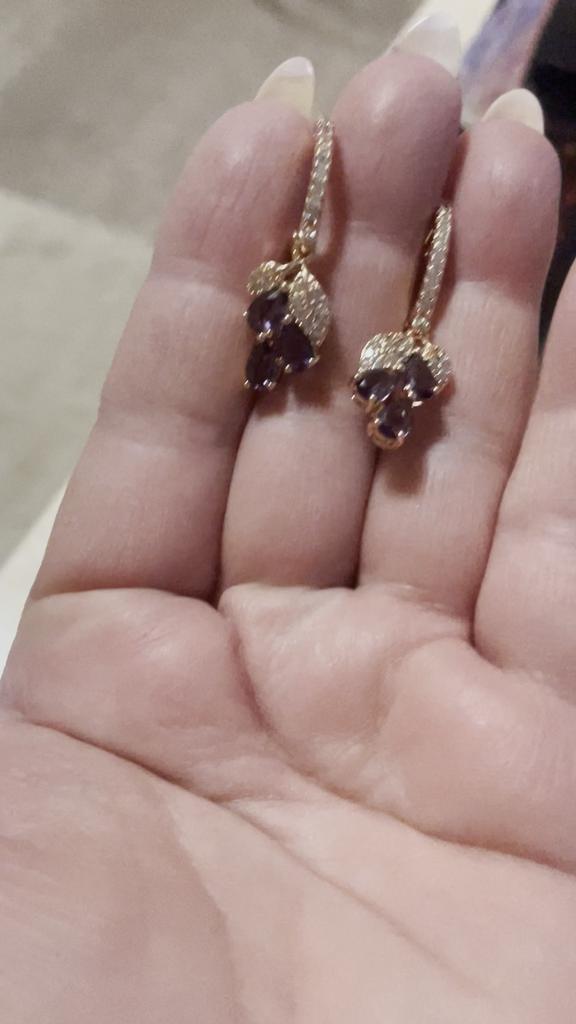 I matched the earrings to the brooch. They are very cute, the clasp is strong, the stones are all in place. The color of the stones is purple, but they also go with burgundy. They came in a plastic box, nicely packaged. Thank you very much for the jewelry. I recommend it.