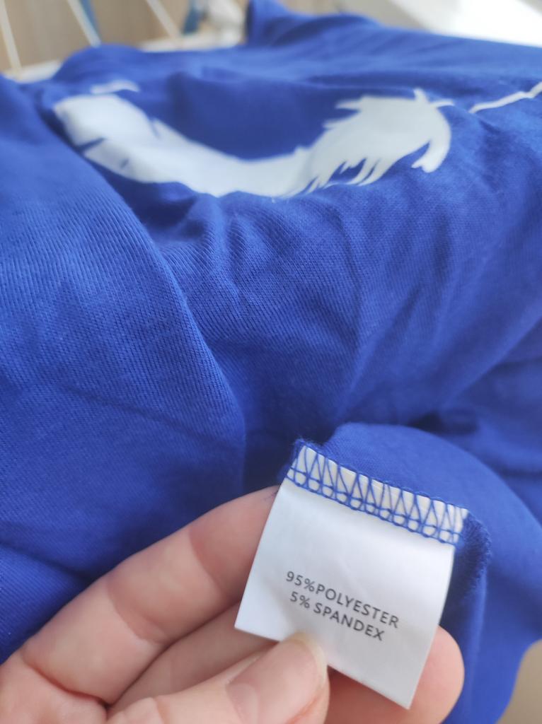 I bought a cotton T-shirt, as stated in the description, but it is 95% polyester and 5% spandex. I was disappointed, I will not order such things again.