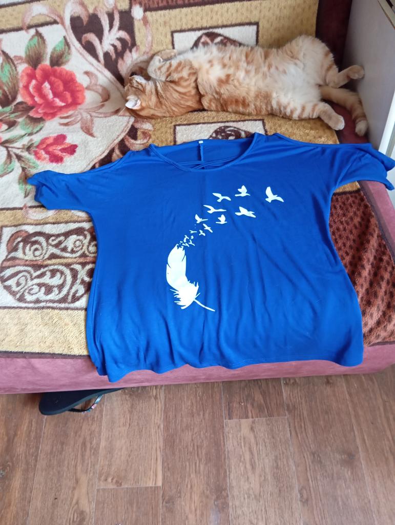 Blue T-shirt: the fabric is very thin, the color is not very bright, blue, as in the photo, the seams are uneven and the ends of the threads are sticking out. I didn't like it. I don't recommend it.. The order was delivered in 25 days, the movement of the goods was tracked throughout.