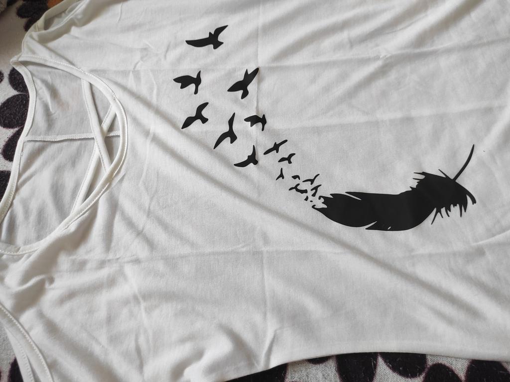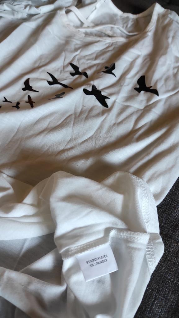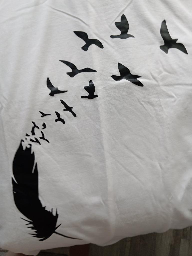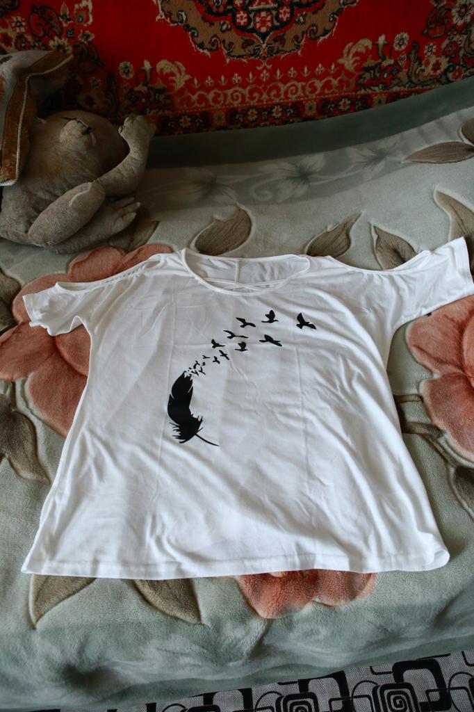 The order arrived faster than originally announced, a whole week!!! The T-shirt fits true to size, fits perfectly, only there are some rubber birds - they will probably “fly away” after washing)))