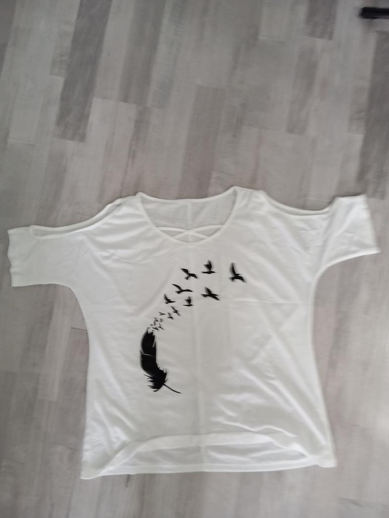 Looks different in the photo than in real life. Regular off-shoulder T-shirt.