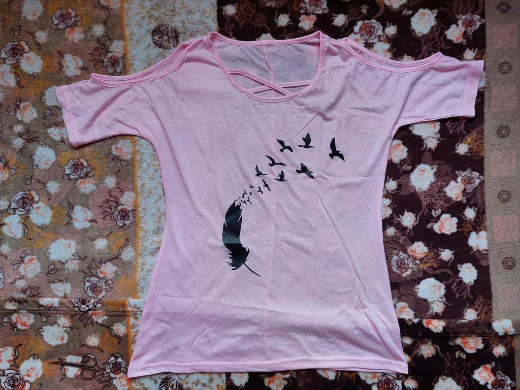 T-shirt made of thin fabric. It looks more interesting in the photo. Arrived VERY FAST, thank you. If I had chosen it in the store, I would not have bought it. and so, well, I’m wearing summer..