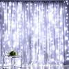 【IP44 Waterproof】These curtain string lights are IP65 waterproof, you could use the warm white waterfall curtain lights inside as well as outside places, such as backdrop tapestries, gauze, curtains, glass sliding doors, walls, windows, Hanging. But the USB power is not water-resistant, you need to do some protection to keep them away from water.