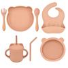 7PCS/Set Baby Silicone Sucker Bowl Plate Cup Bibs Spoon Fork Sets Children Non-slip Tableware Baby Feeding Dishes BPA Free
