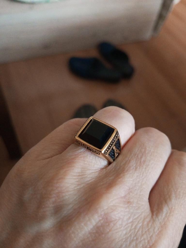 Men Vintage Finger Ring Fashion Hip Hop Titanium Steel Gold Plated Black Onyx Jewellery Accessories Luxury Male Dance Party Ring