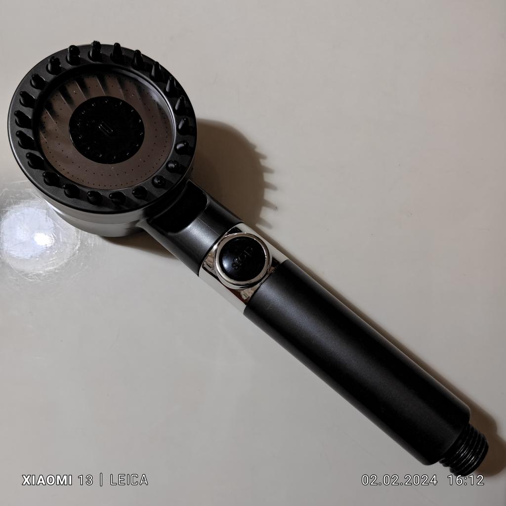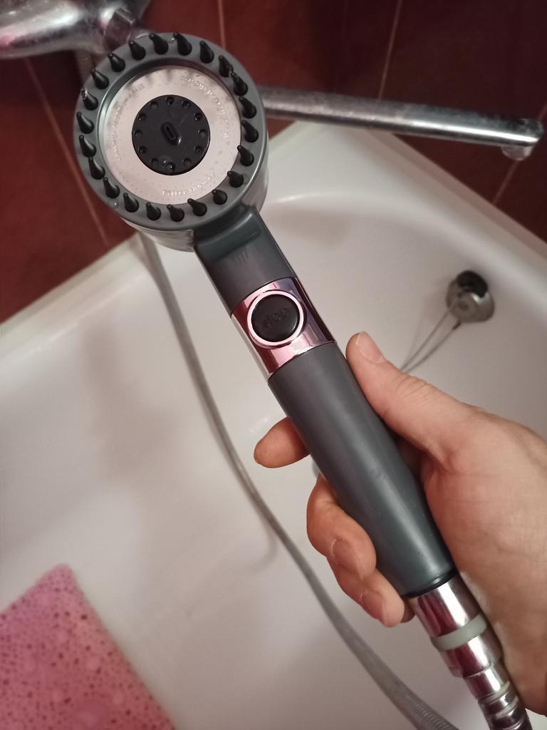 Cool shower head 🚿, you can turn the water on and off directly with the button on the shower head itself, the water has two modes, one of them is unusual, irrigation.
