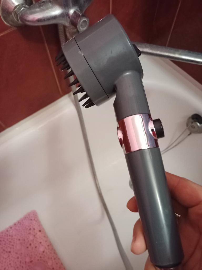 Wonderfully comfortable with elastic spikes, you can massage the body, wash the back. The atomizer regulator gives different jet power. Very satisfied. Simple, but very convenient and material with soft spikes and a strong body.