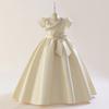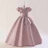 Satin Bow Party Girls Dress Elegant Short Sleeve Pink Bridemaids Princess Kids Dress for Girl Evening Birthday Prom Gown Vestido