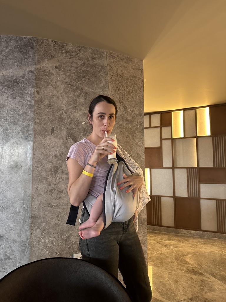 So my 7 month old son can't sit there. Even at the lowest setting, my son is too far away from his body. I'd rather wear it without the thing and have it safe