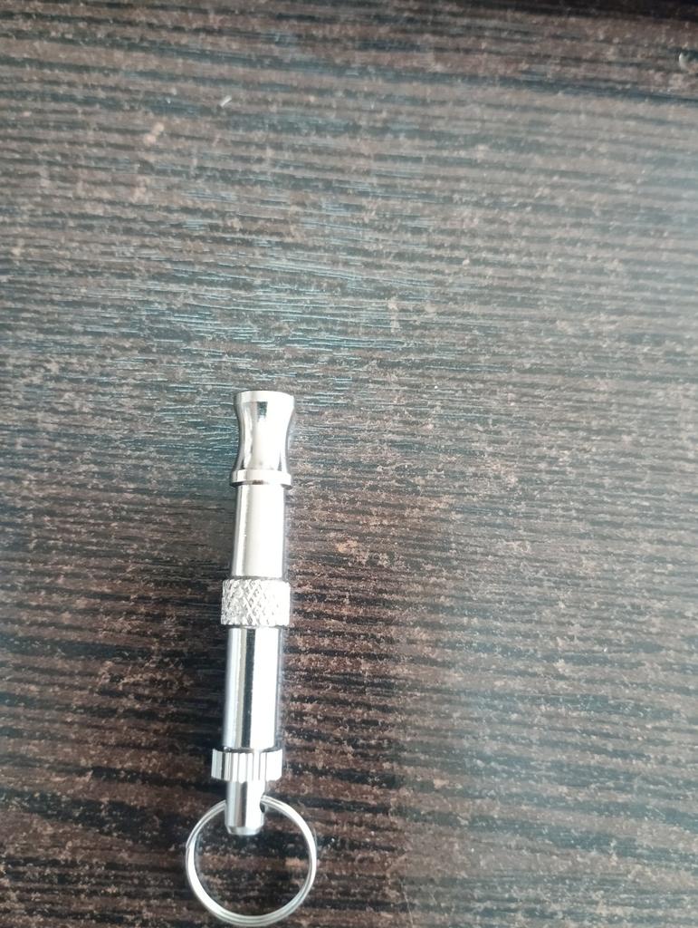 Whistles like a normal whistle. In addition, it is small, it looks like a key ring)