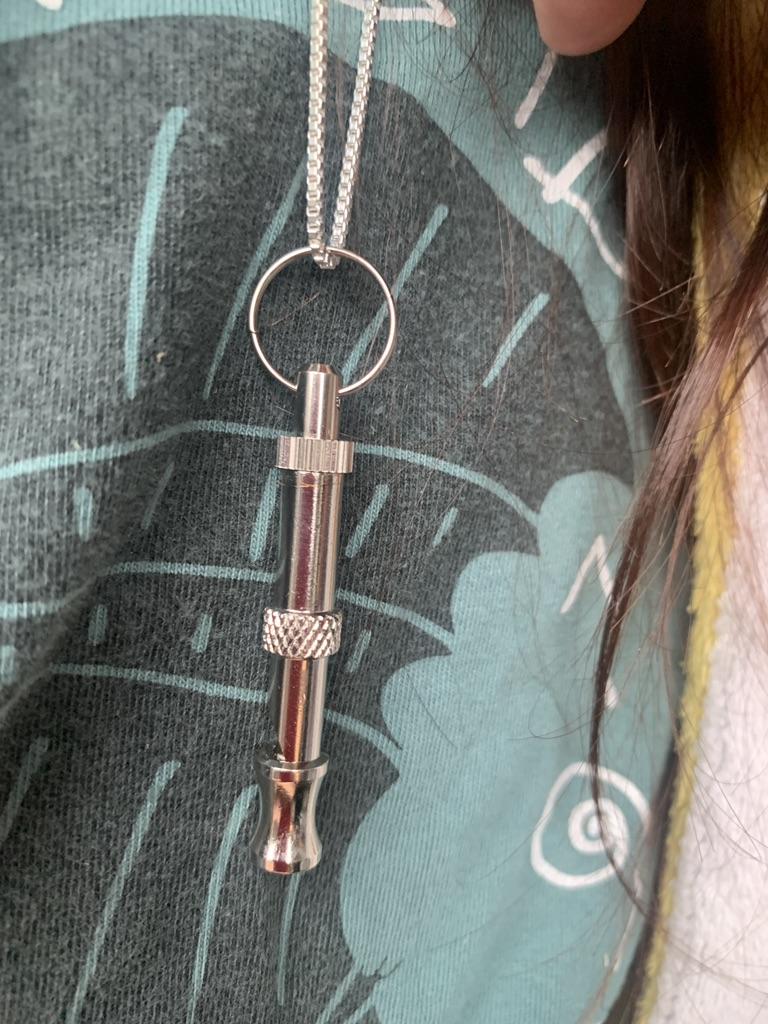 I doubt the whistle actually scares anyone away or stops barking, but it's cool