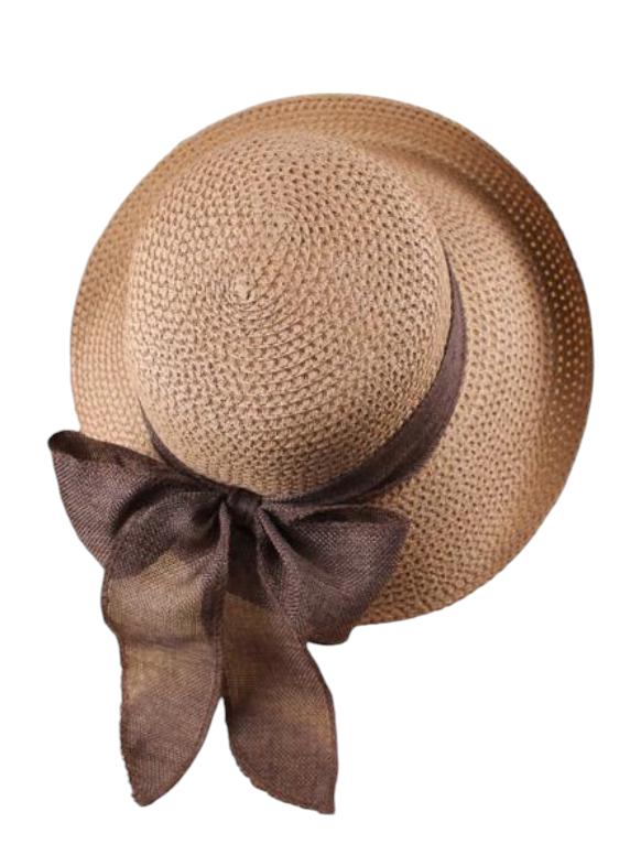 Ribbon Bowknot Decor Straw Hat Round Dome Solid Color Folding Women Big Brim Sunscreen Travel Hat Fashion Accessories