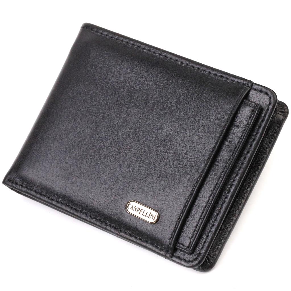 Practical Compact Wallet with an Insert for ID for Men Made of Genuine Smooth Leather CANPELLINI 21876 Black