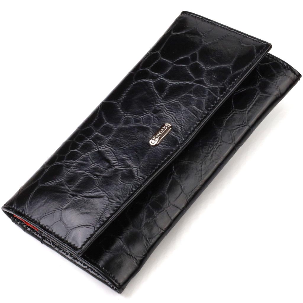 Unusual Women's Wallet Made of Genuine Textured Leather CANPELLINI 21834 Black