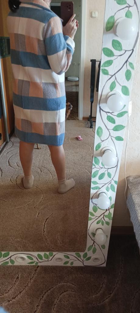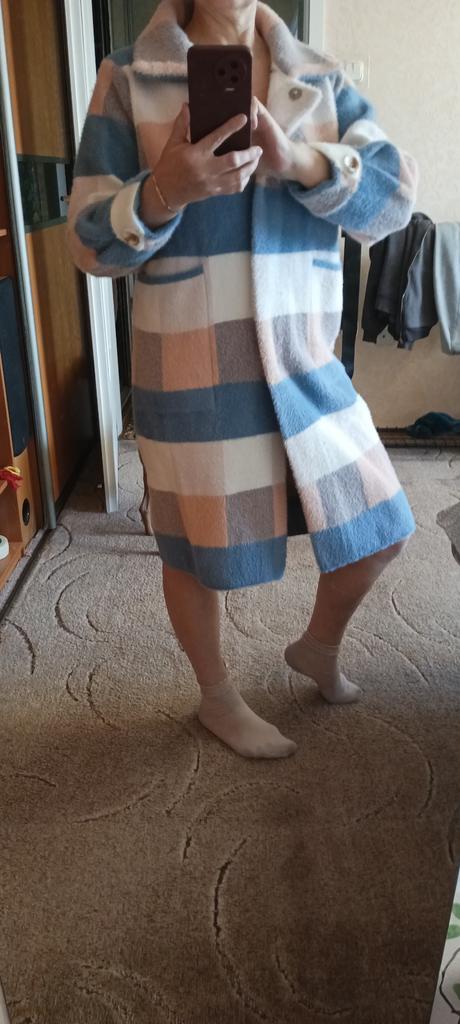 Magnificent coat, but the length is above the knee, very warm, the color matches. When I put it on, my mood lifts, although the buttons are very difficult to undo. I recommend it.