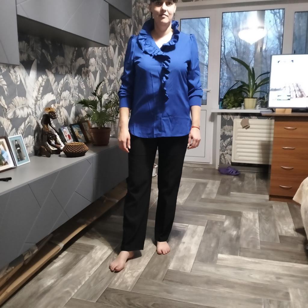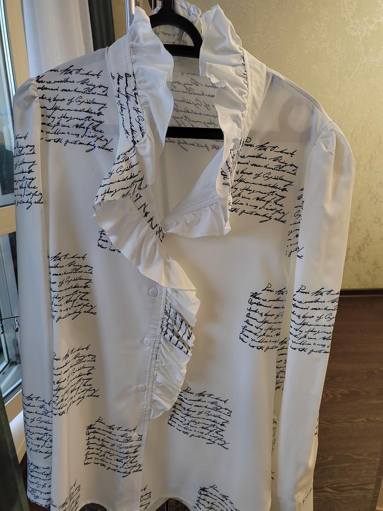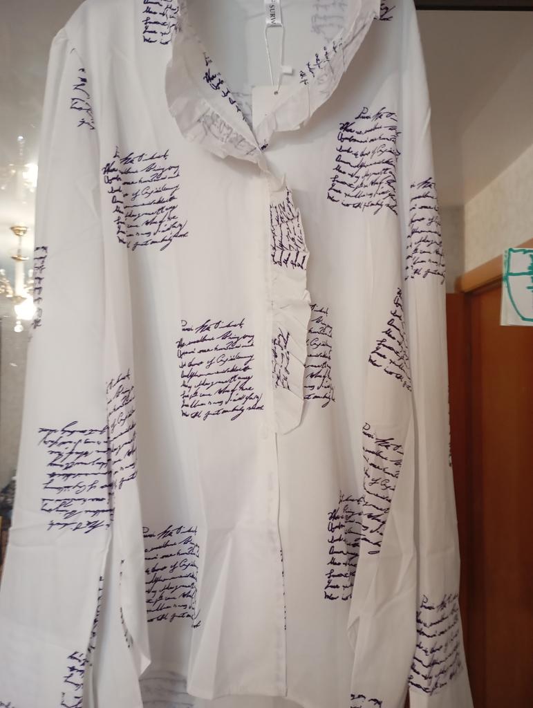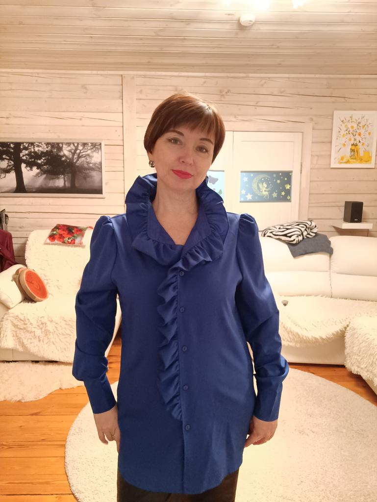The shirt is super!!! Is it true. I ordered white at first, fell in love, ordered blue. I can recommend it 100 percent! Light, beautiful, feminine, high quality, looks great! Girls, don’t hesitate to order. I ordered 2X L for 50-52, exactly. 😀