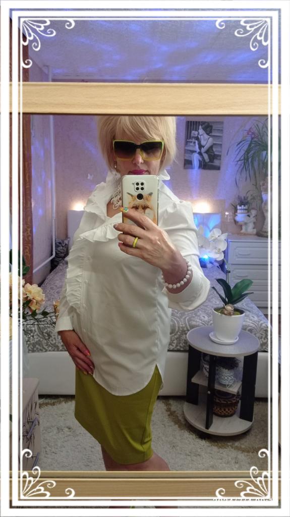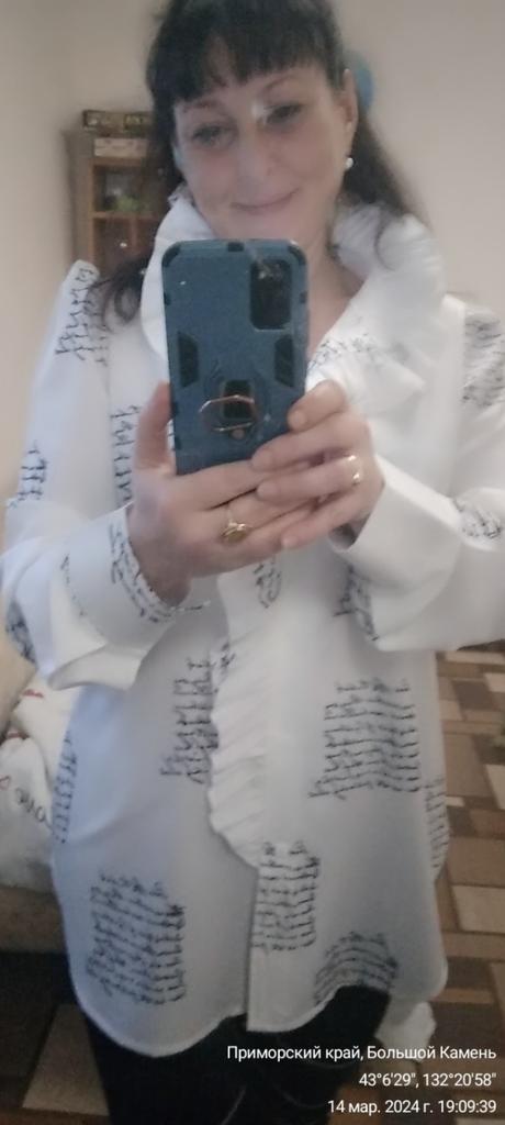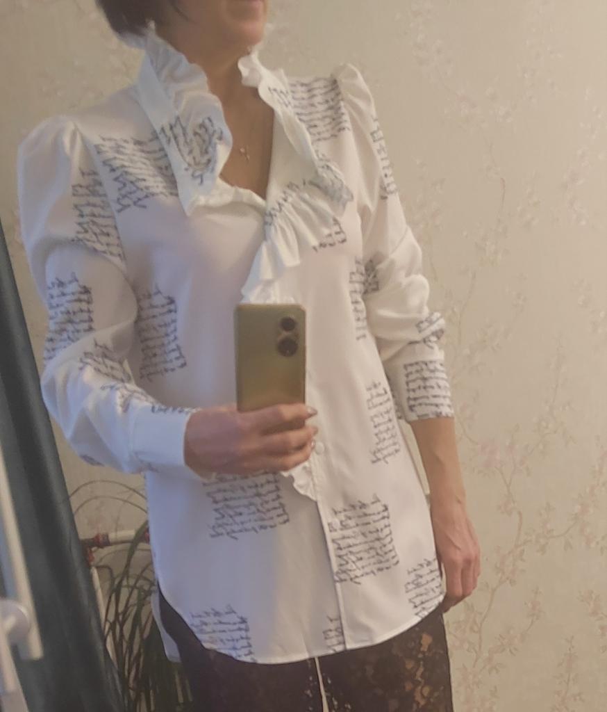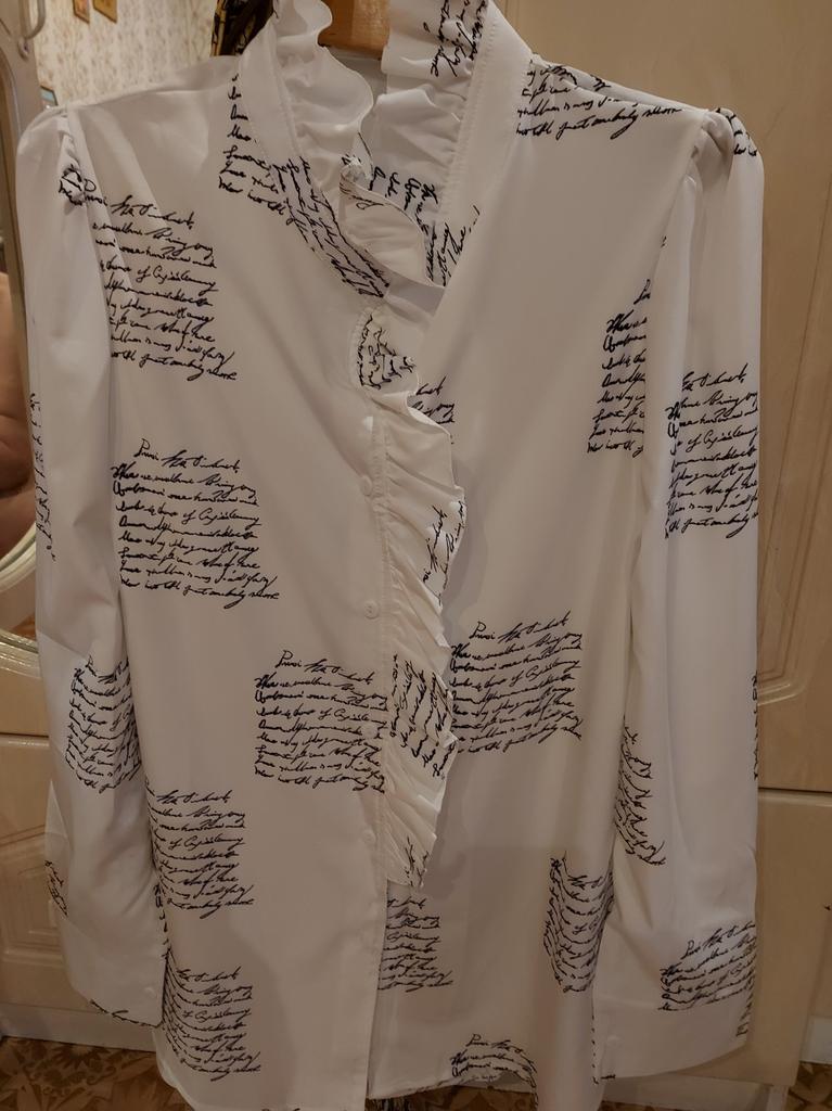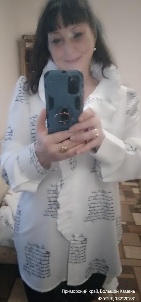 The shirt is super!!! Is it true. I ordered white at first, fell in love, ordered blue. I can recommend it 100 percent! Light, beautiful, feminine, high quality, looks great! Girls, don’t hesitate to order. I ordered 2X L for 50-52, exactly. 😀