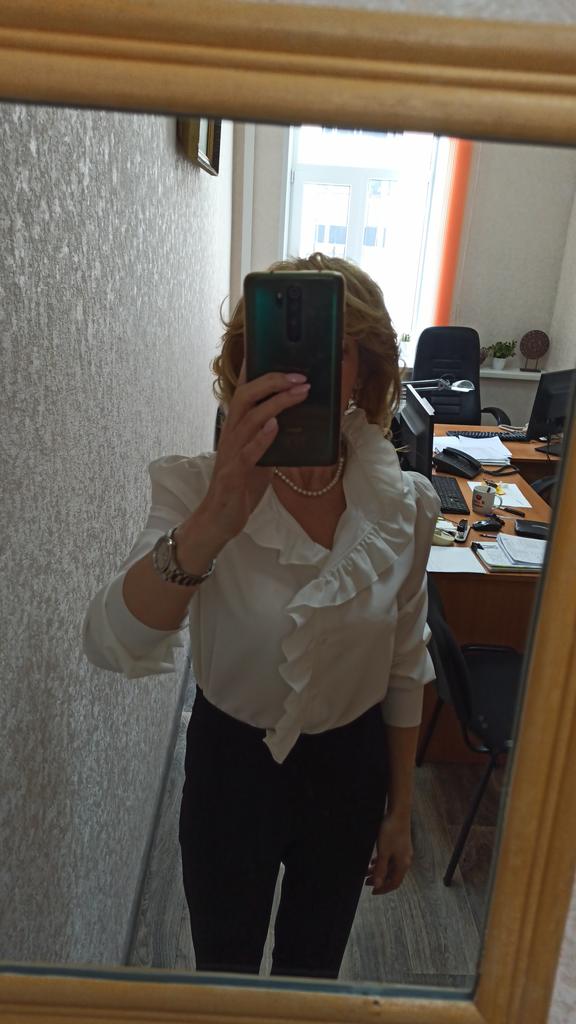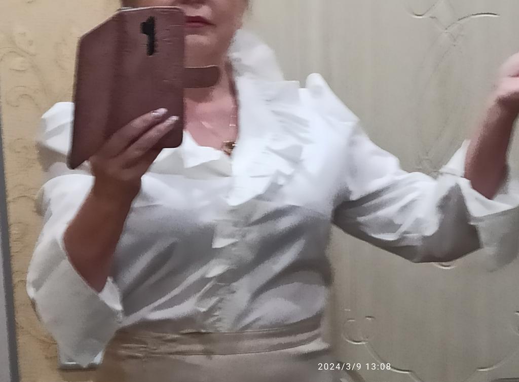 The blouse is wonderful, only the color was “tea rose”; if it were snow-white, it wouldn’t have a price. The fabric is very nice. The size matches. Thank you.