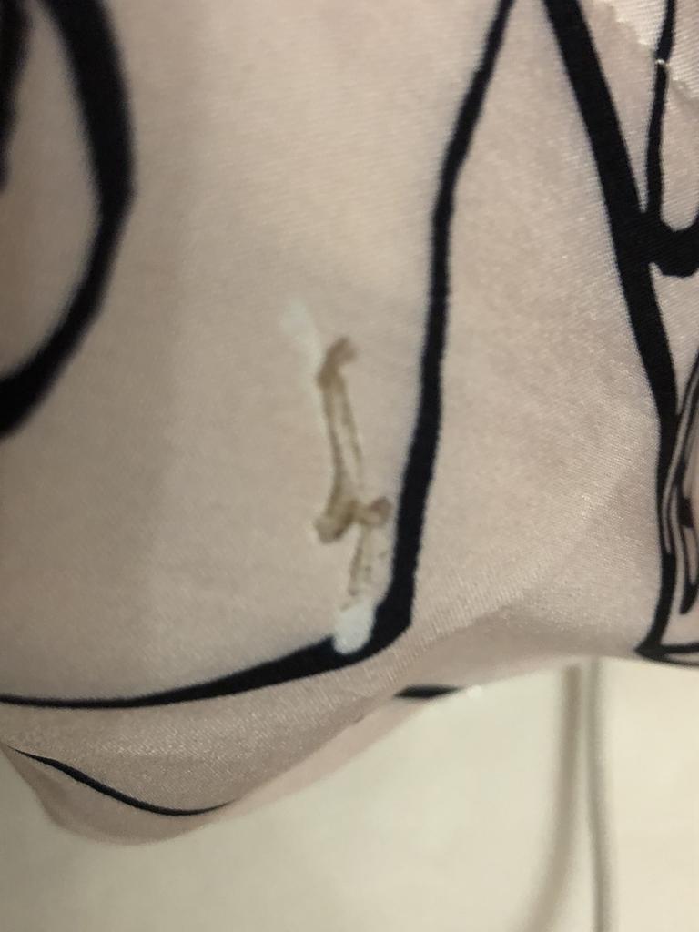 A blouse with a glue stain. from which the fabric of the blouse was not dyed. I am supplementing. After contacting the support service, they promised to return part of the amount.