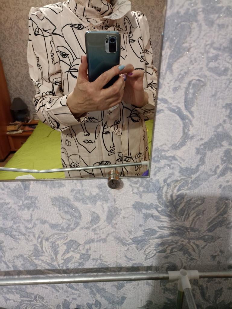 A lovely shirt, this is already the second, the first was red, elegant, the color was rich. The sleeves are a little long, but I changed the buttons and everything fell into place. Thanks Joom. I love. I recommend