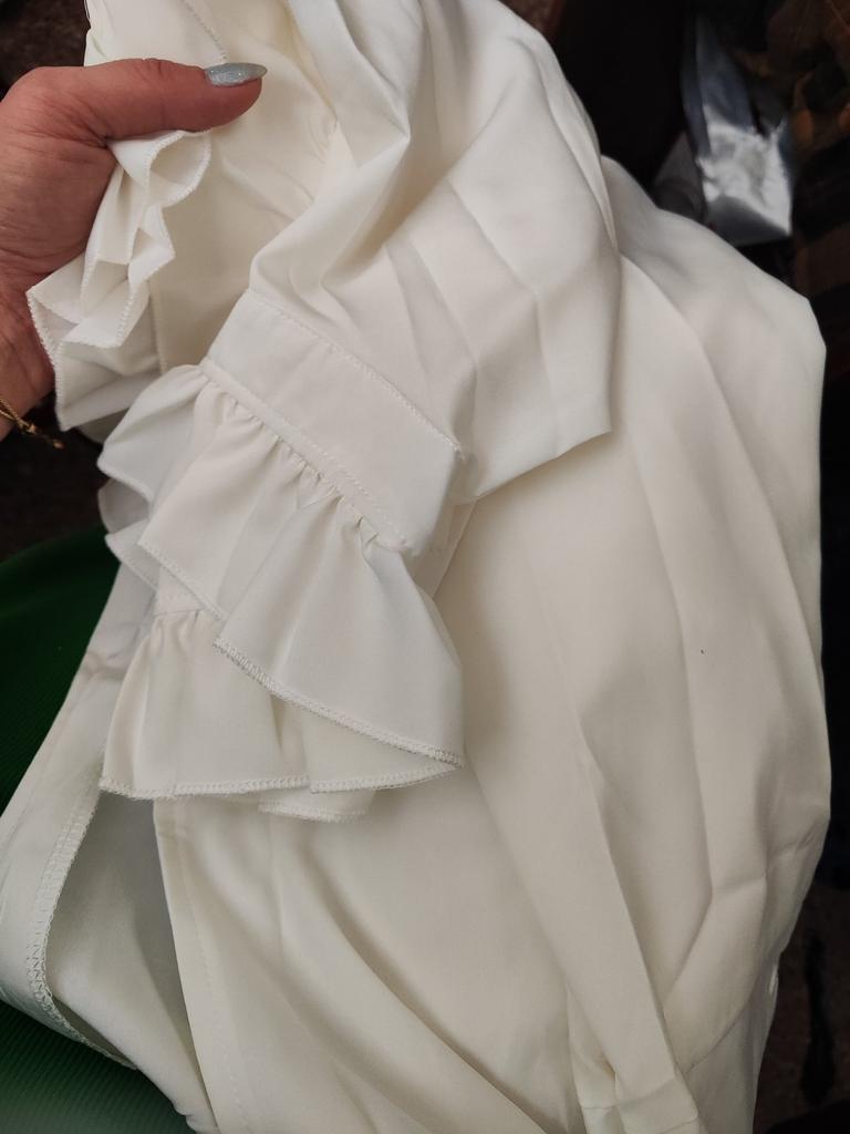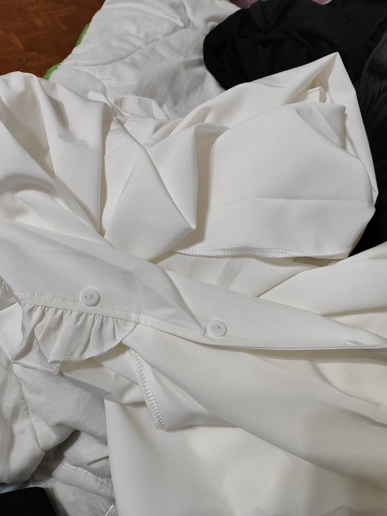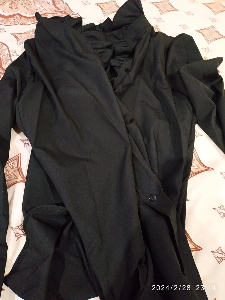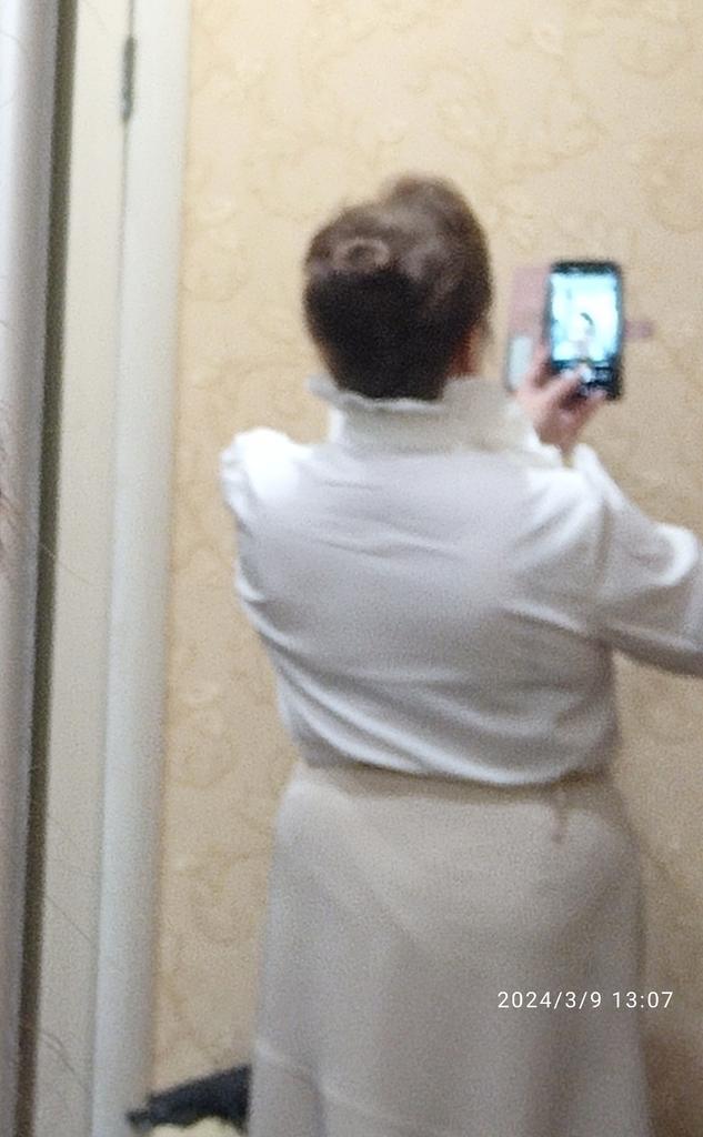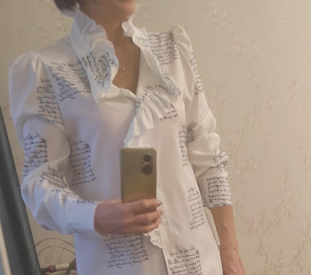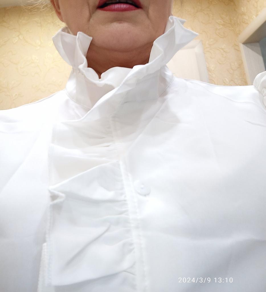 The blouse is gorgeous! The collar is elegant, the sleeves are beautiful, there are slits on the sides, it looks beautiful and luxurious! Thank you all.