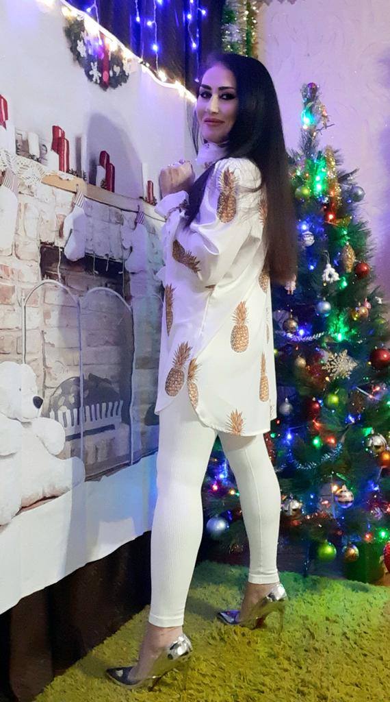 The BLOUSE is good for a tall, slender GIRL, I wear L. It’s good in the shoulders, good in the stomach, and good in the waist and hips.