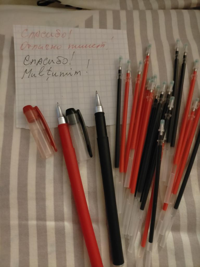 The color is excellent and saturated, writes smoothly. Consumption is high. For a teacher, it lasts for two tests for the whole class with numerous notes and comments.