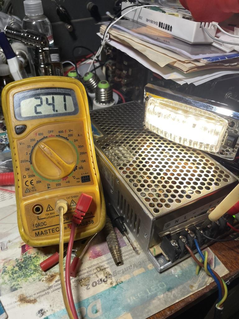 It doesn't shine very well, whether it's 12 volts or 24. You can see for yourself by the current whether it's a lot or a little. The housing is plastic.