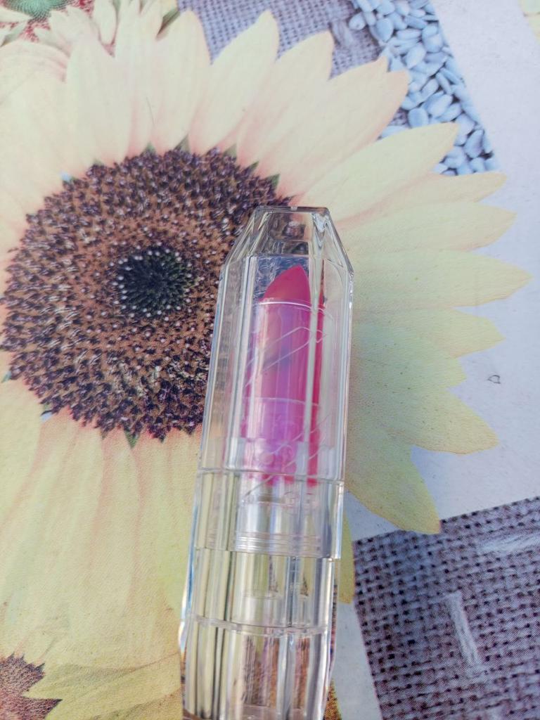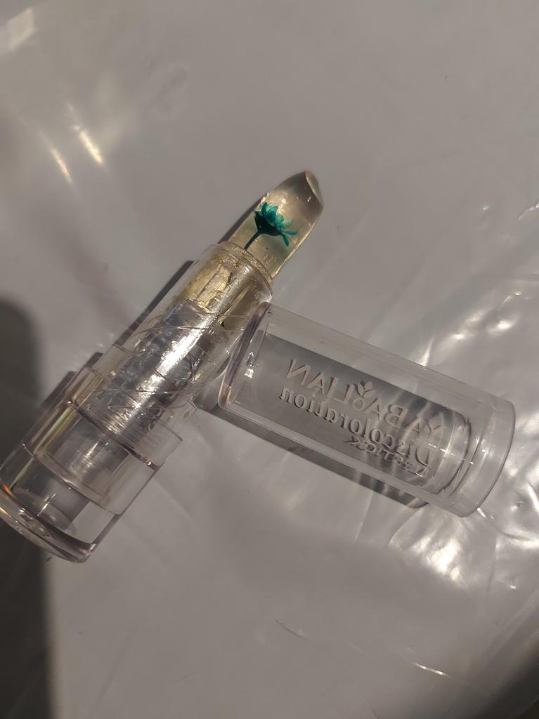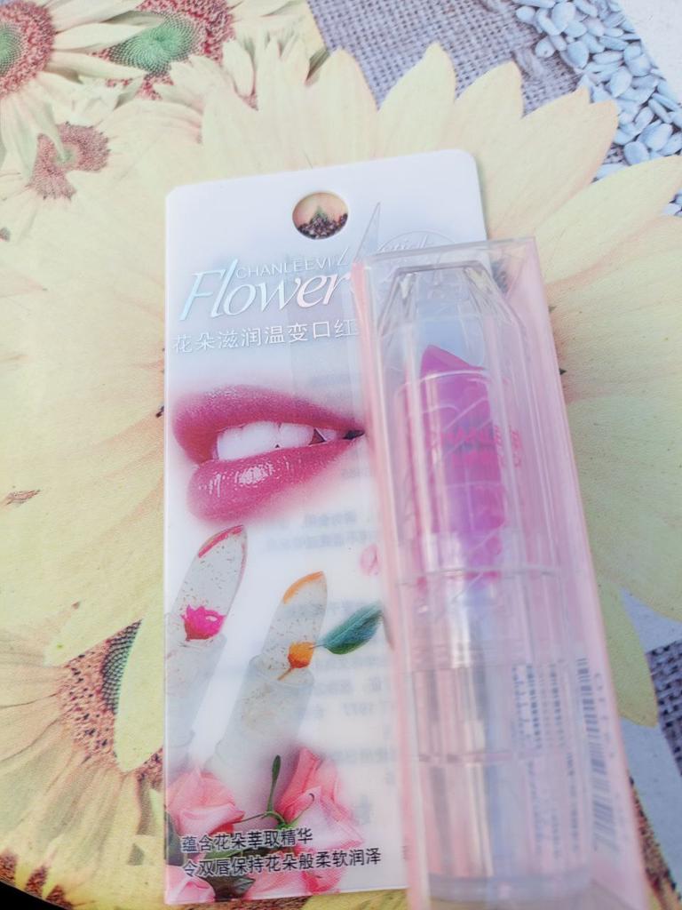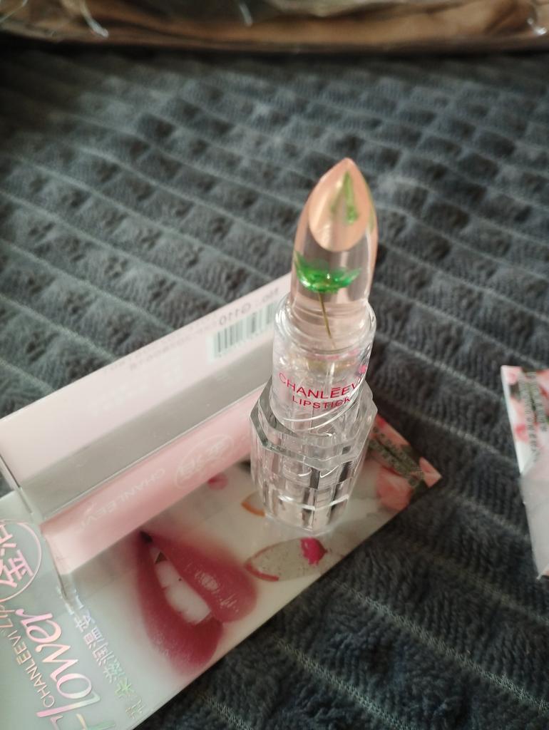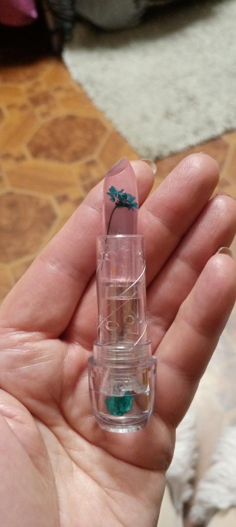 It's excellent in this particular packaging, but with the same little flower in an opaque pink case, it tastes bitter on the lips, I threw it away.