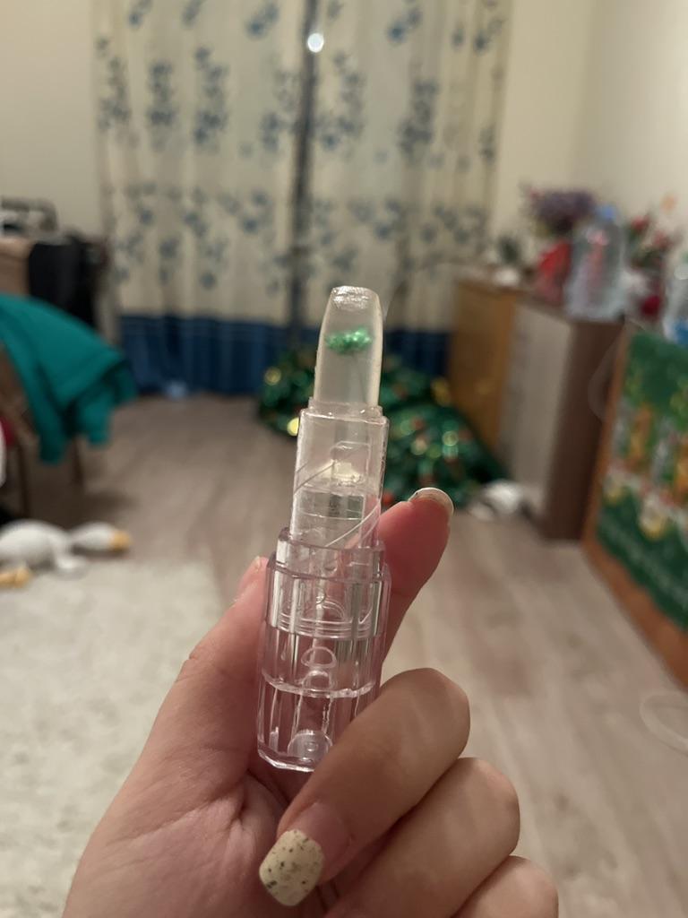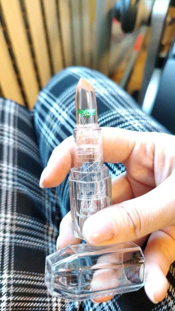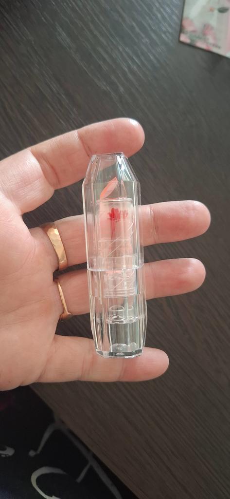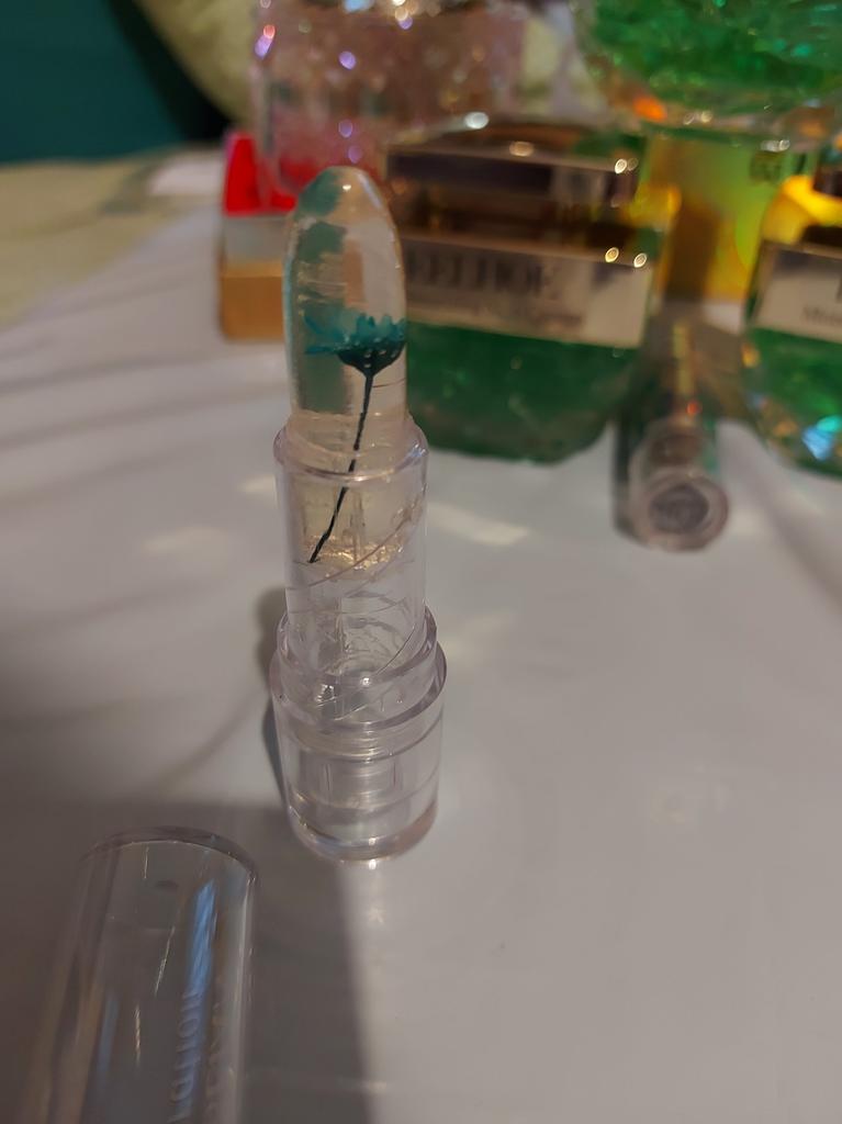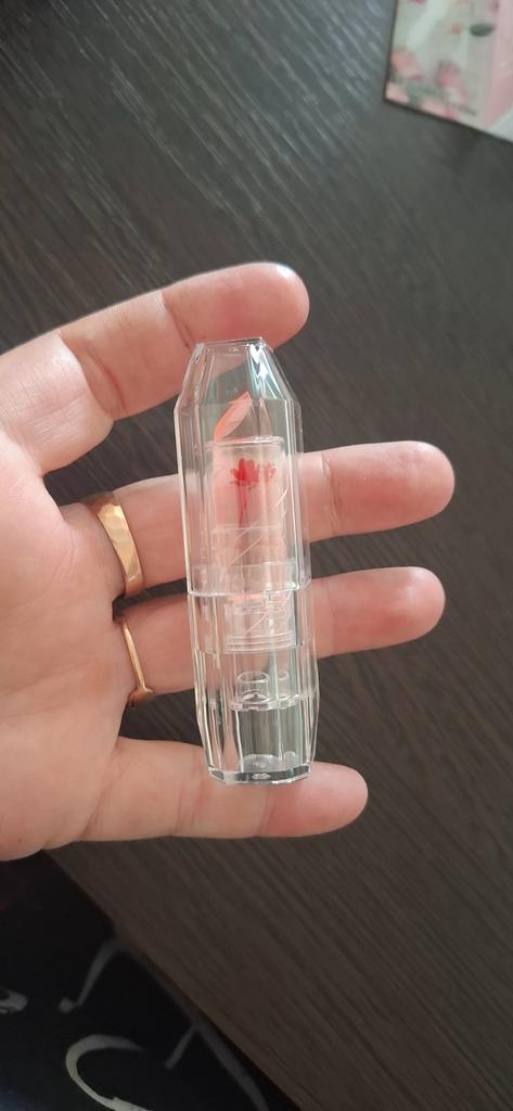 It's excellent in this particular packaging, but with the same little flower in an opaque pink case, it tastes bitter on the lips, I threw it away.