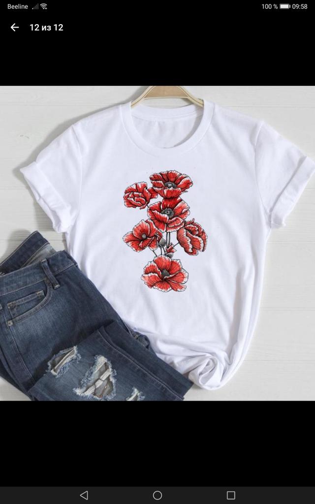 (Asian Size)Tee Clothing Cartoon Flower Floral Style Casual Top Fashion T Shirt Short Sleeve Women Print Lady Female Graphic T-shirt
