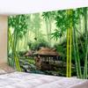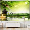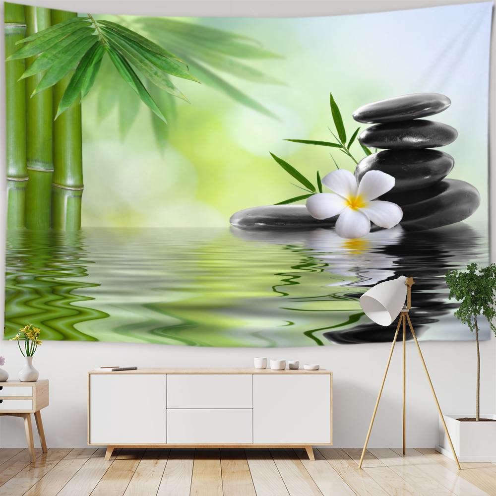 Chinese Zen Garden Green Bamboo Water Lily Print Tapestry Home Living Room Room Wall Decoration Background Cloth Tapestry